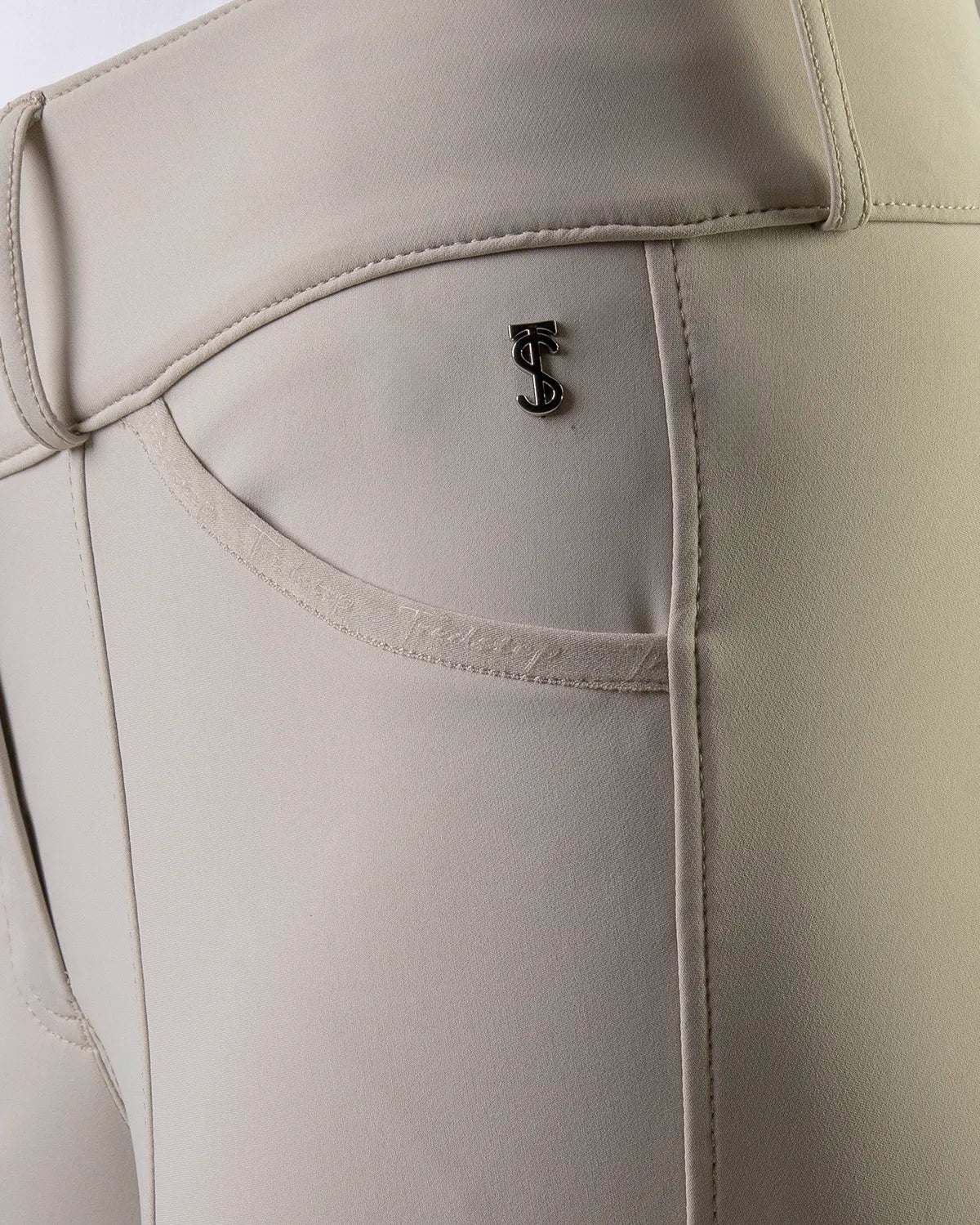 • Styled as a Mid rise tight with slimline covered pockets, Silicon directly on fabric to create a Full Seat with perfect grip