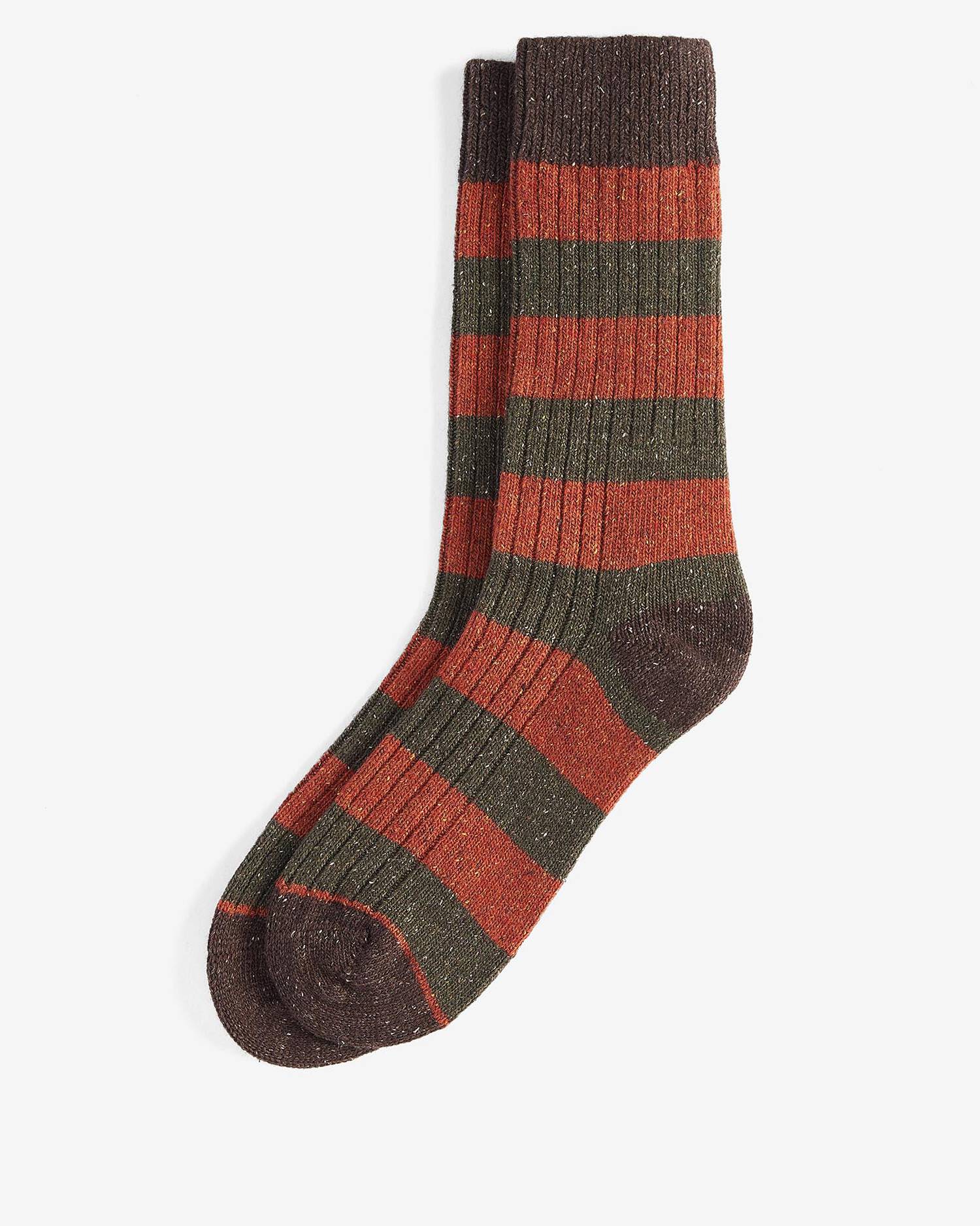 The Barbour Houghton Stripe socks are crafted in a luxury wool-blend and feature a wide striped design. Boasting a contrast heel and toe, these socks are finished with a printed Barbour logo to the sole of the foot.