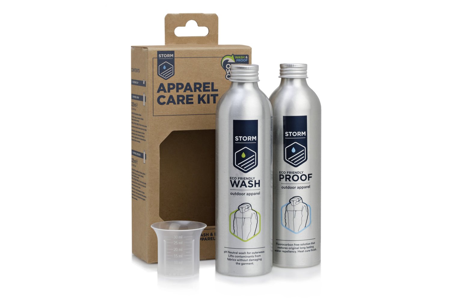 Apparel Wash, Apparel Proof and a handy Dosing cup to ensure correct volume of product is used.