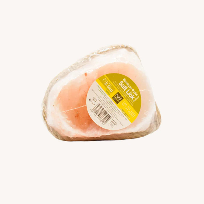 Pierre à lécher 100 % pure et naturelle Ces pierres à lécher de l'Himalaya NAF fournissent du sel gemme 100 % pur et naturel. Le sel est de première qualité et conserve une couleur uniforme. La consistance est trop dure à mordre pour les chevaux et ne se détache pas en morceaux. Une manière fantastique de fournir à votre cheval, de manière naturelle et économique, le sel quotidien dont il a besoin. Guide des tailles Disponible en 750 g, 2,5 kg ou 4,25 kg.