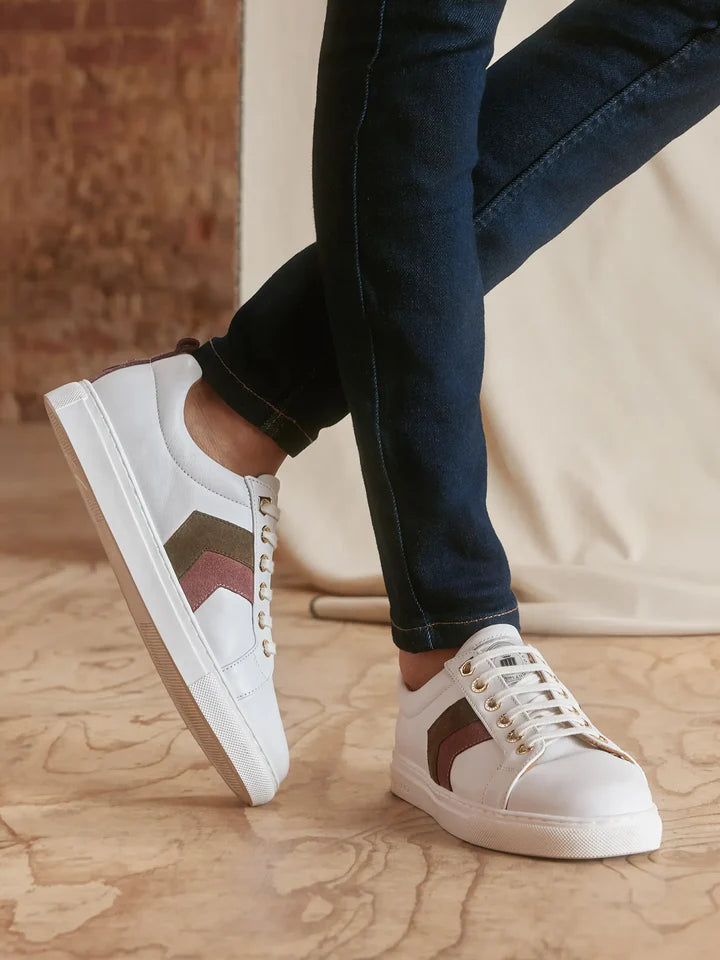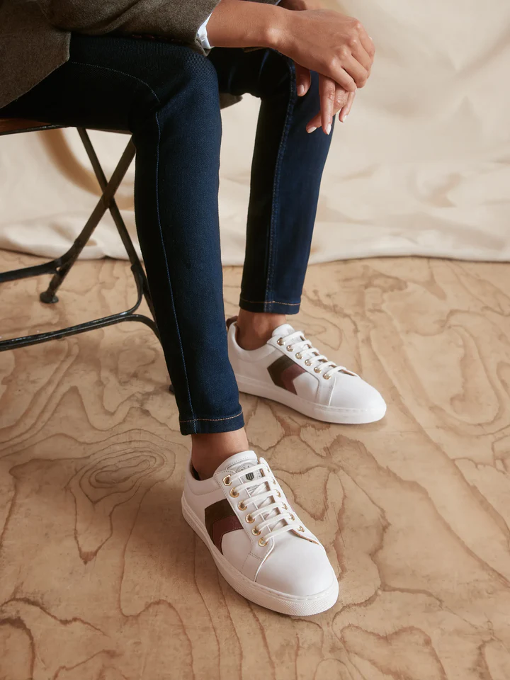 Our original wear-with-anything trainer, Alexandra is handcrafted from premium, sustainably-sourced leather – in classic white finished with our signature chevron detailing in a range of colours. Fabulously versatile, they’re a staple for all seasons.