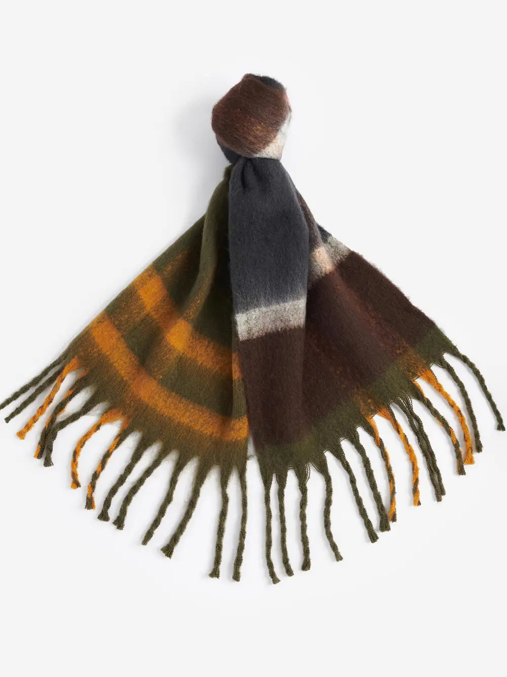 The Barbour Isla scarf is an ultra-soft accessory that’s great for layering in cold temperatures. This stylish garment comes in an all-over signature tartan pattern and is finished with XL tasselled trims for a unique look.