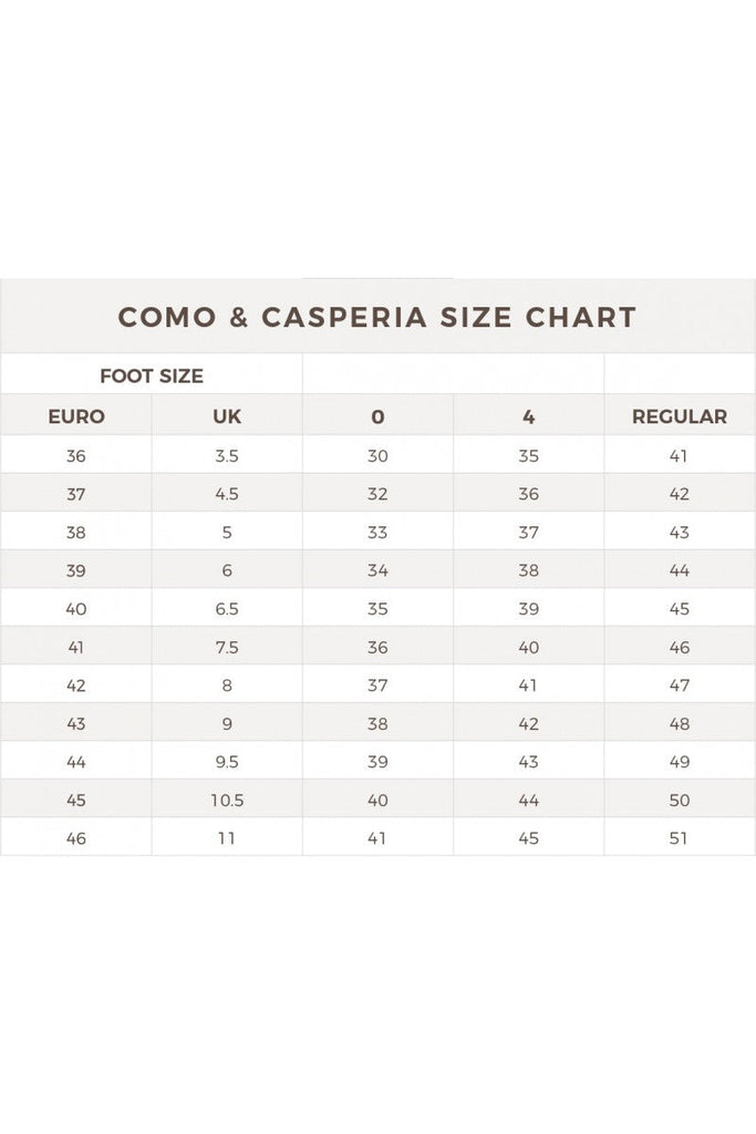 • Foot sizes range from 36 to 46