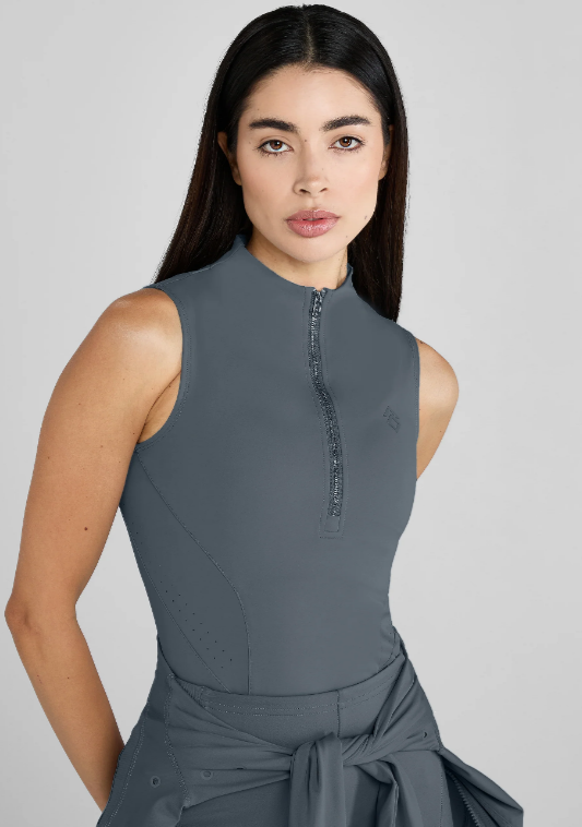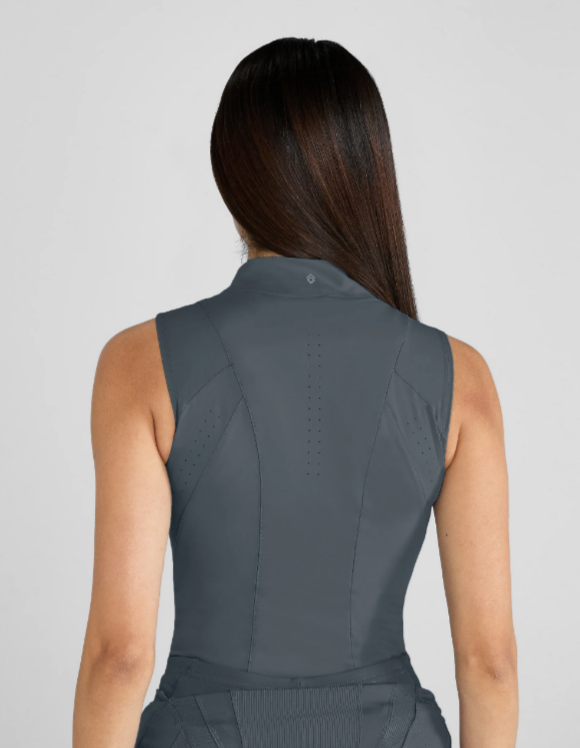 • Full-coverage sleeveless design with a mid-neck and zip opening for adjustable ventilation and a streamlined silhouette.