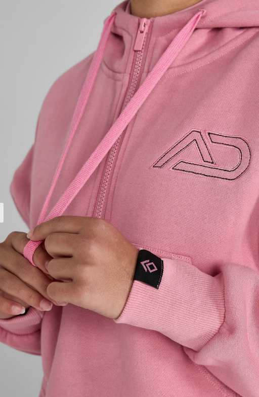 • AD pink branding to the front with a large contrast-stitch logo on the chest