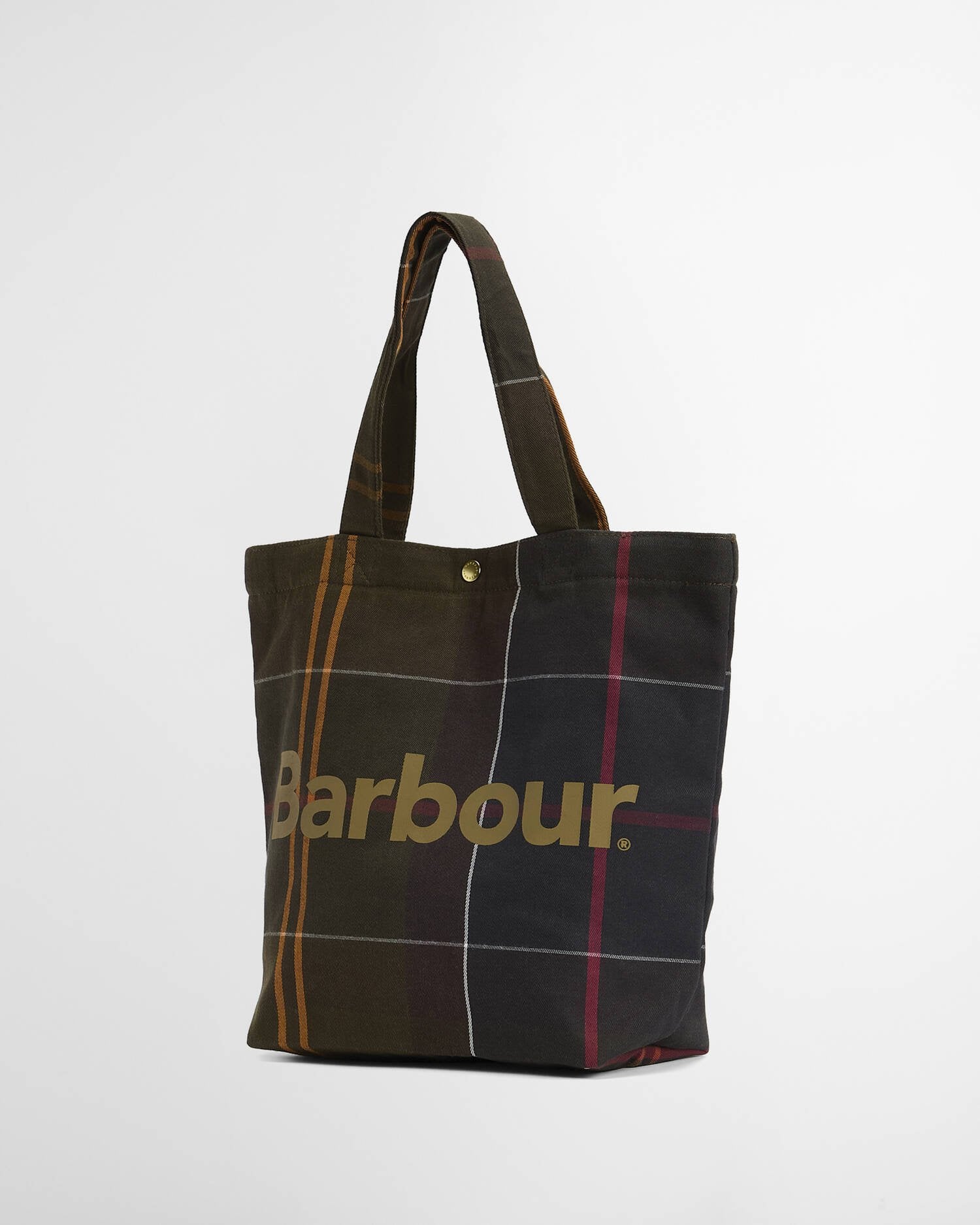 The Barbour Mini Telfield Tartan Tote is crafted from cotton in a signature tartan design. Featuring a branded stud closure, internal slip pocket, and a large printed logo on the front panel, it combines practical everyday functionality with heritage-inspired style, making it a compact and stylish choice for daily use.