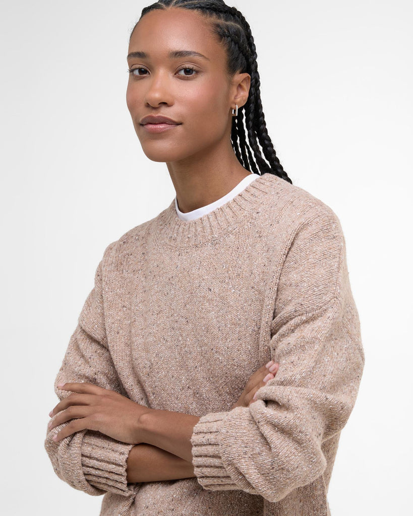 Revitalise your wardrobe with the women's Barbour Lavensdale Crew Knitted Jumper. This mid-gauge, oversized sweater boasts a cosy crew neck design and is crafted from a neppy yarn, adding texture and depth to your ensemble. With dropped shoulders and rib trims, it offers both comfort and style, perfect for casual days out or lounging at home. The reverse knit stripe at the back adds a subtle yet distinctive detail, elevating this jumper from basic to effortlessly chic. Whether you're layering it over a shirt for a preppy look or pairing it with leggings for a relaxed vibe, the Lavensdale Crew Knitted Jumper is a versatile addition to your knitwear collection. Embrace comfort and style with this essential piece, ideal for staying cosy and fashionable all season long.