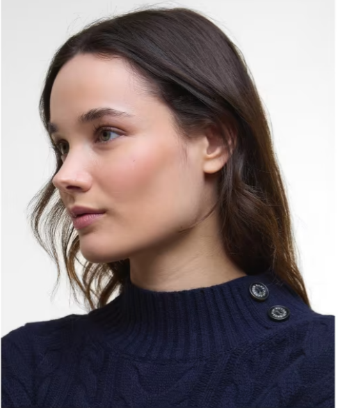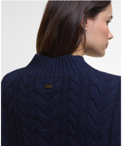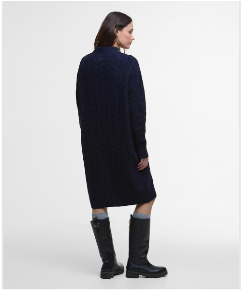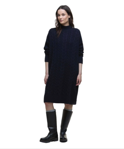 Introducing the women's Barbour Belford Knitted Mini Dress, a cosy and stylish piece crafted in a heavy gauge wool blend with a contemporary all-over cable knit pattern.