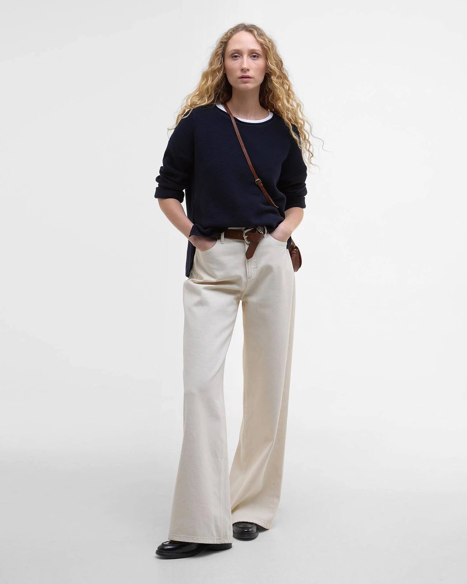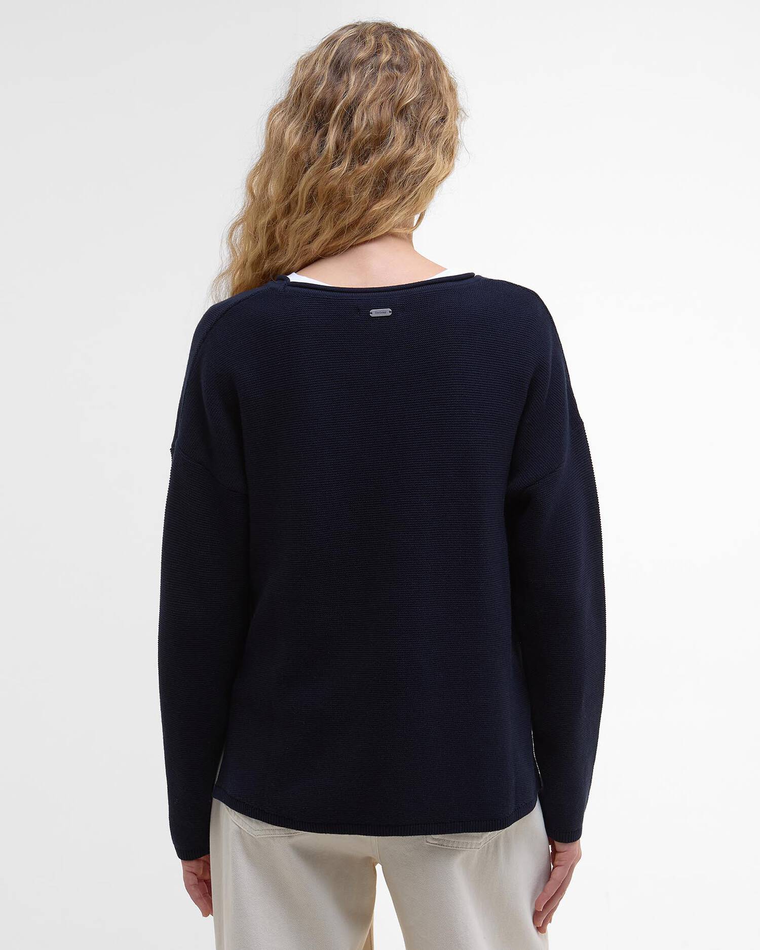 A versatile layering piece for the modern woman, the Barbour Marine Knitted jumper features a slightly cropped fit for a contemporary look. This easy cotton basic is woven in an all-over textured stitch, while the dropped shoulders and side splits at the hem give it a relaxed feel.