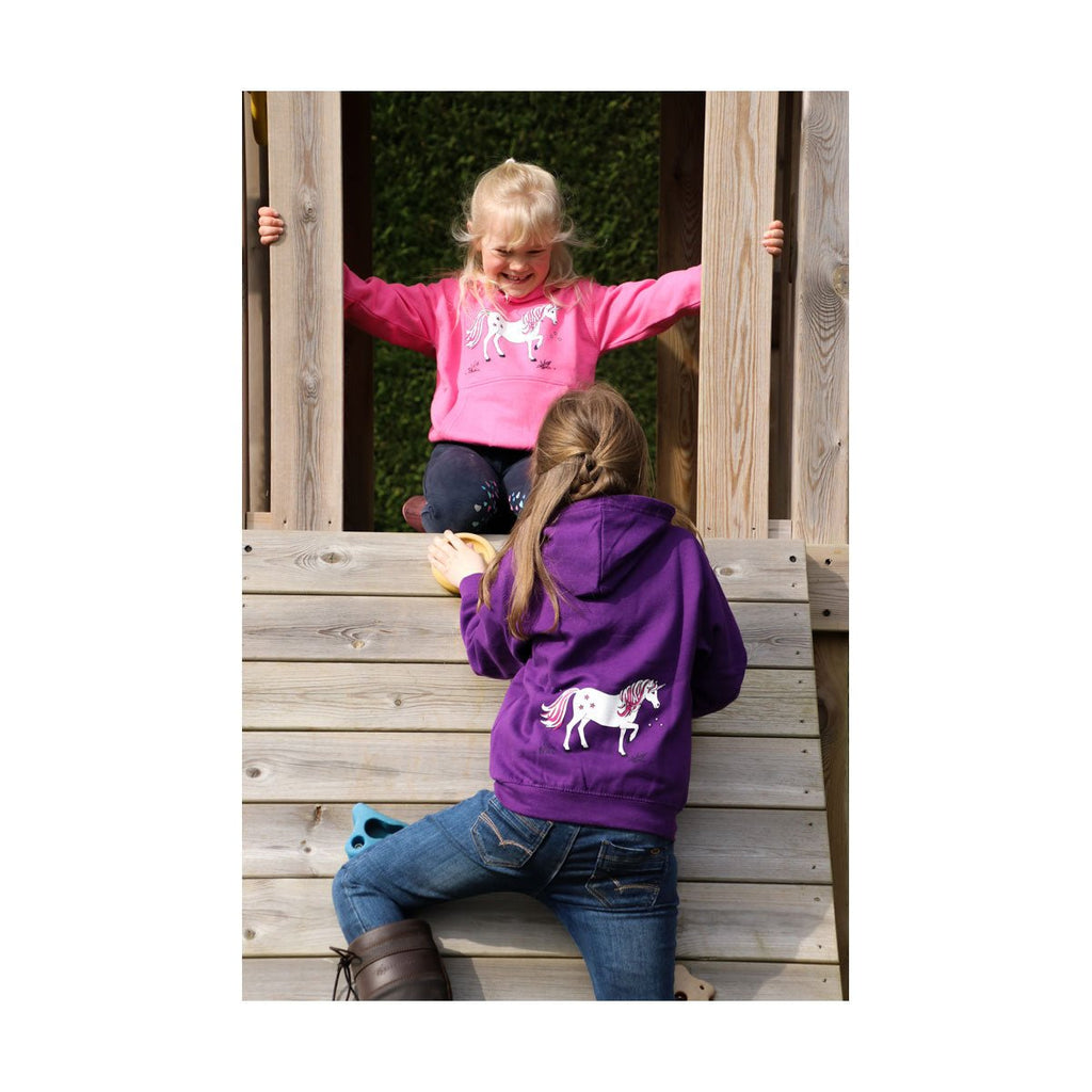 Childrens hoodie with a dancing unicorn on the front and back - your unicorn is on display whether you are riding towards or riding away!