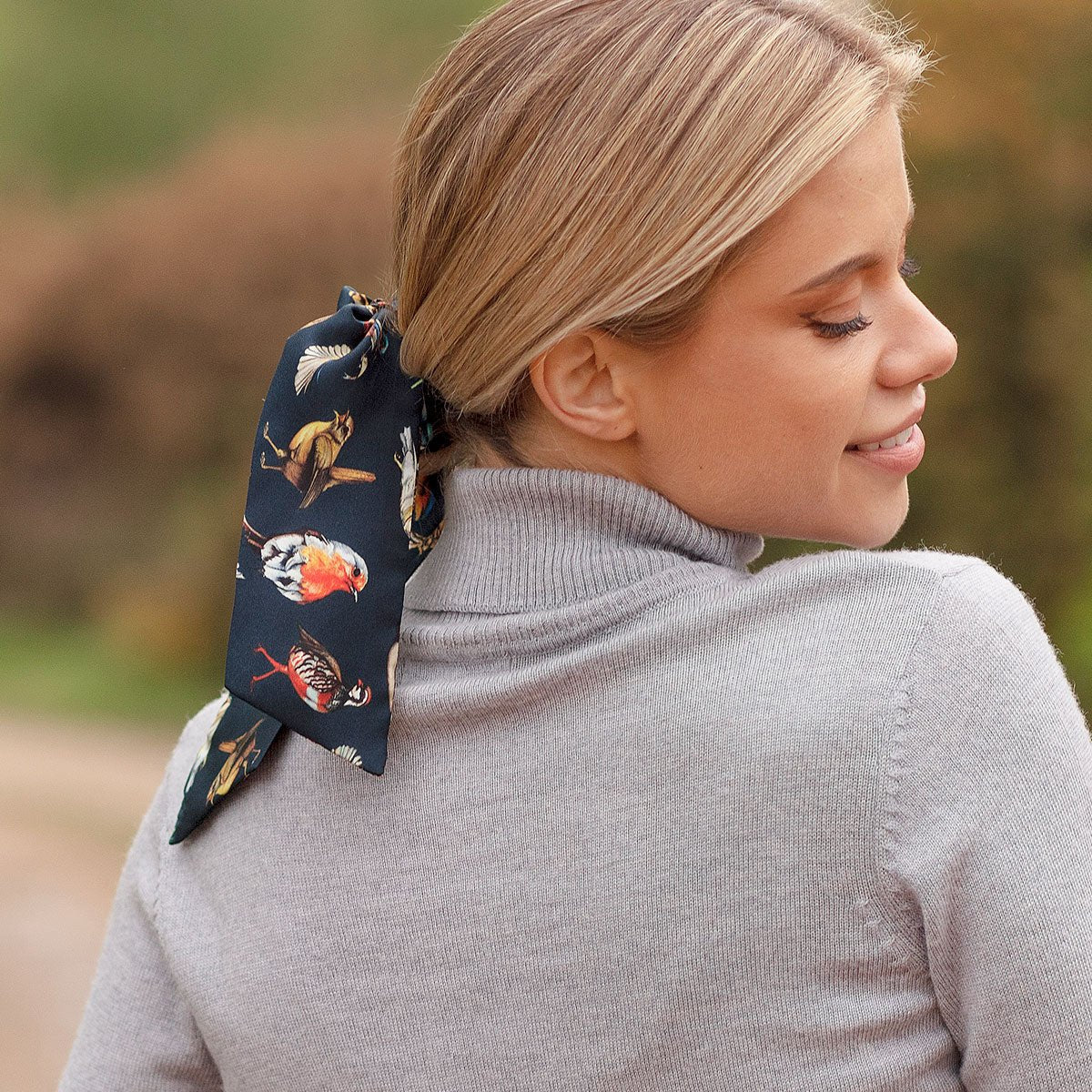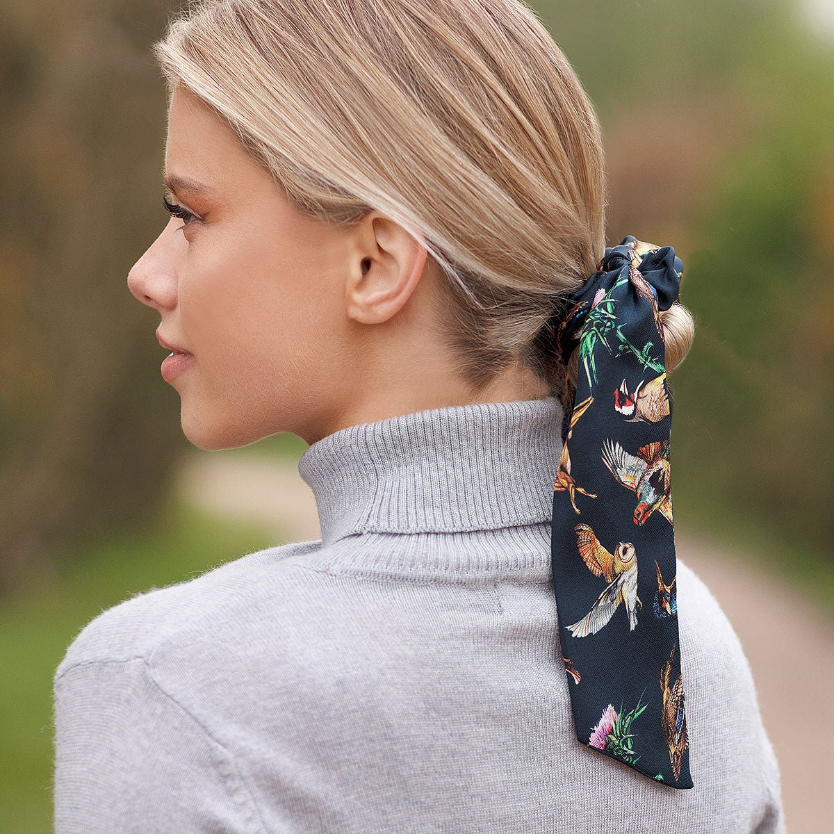 My hair accessories gave a multitude of uses.  The tail detaches so you can wear the scrunchie on it's own and then tie the scarf to your handbag, round your wrist, or with the long one it can be worn as a headband.