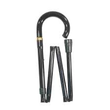 A traditional folding stick with a crook handle.  The strong and light black aluminium shaft is height adjustable in 2.5cm increments from 83 to 92cm (32.5"-36").  The crook handle is hardwood, painted black.