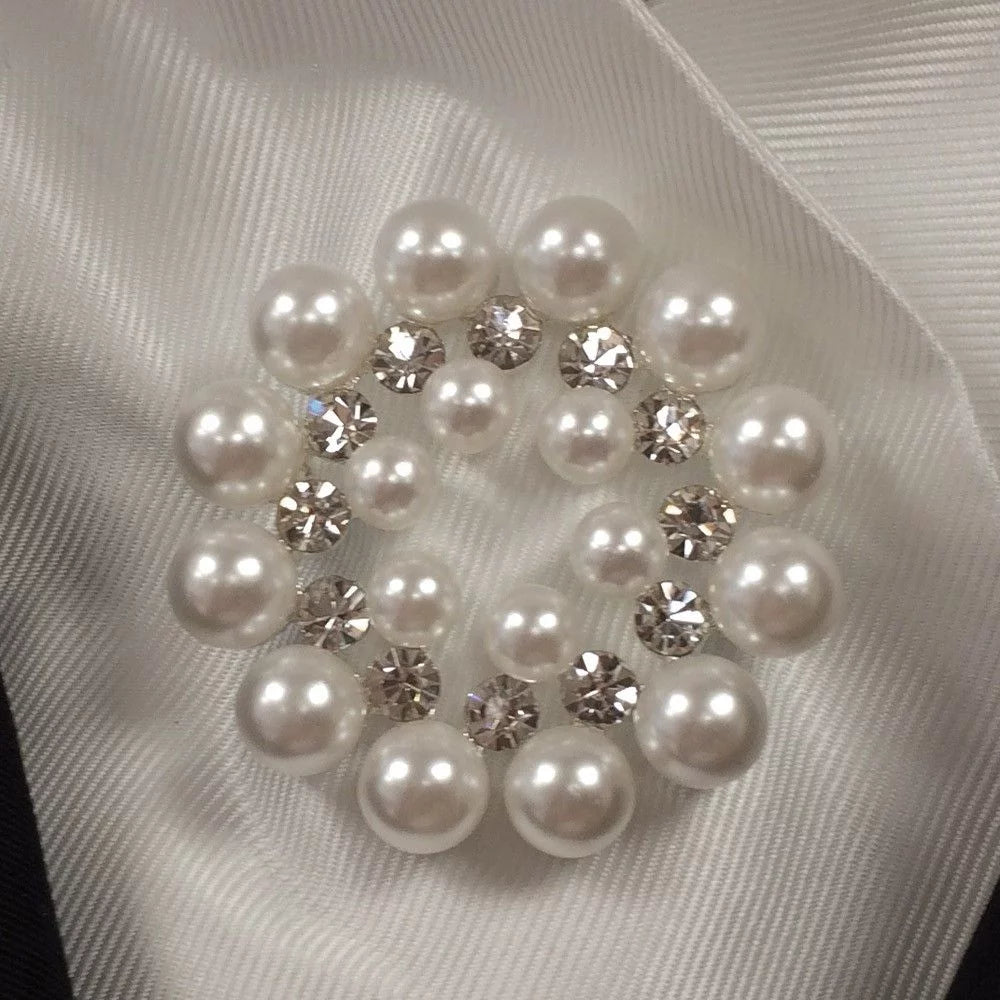 The Equetech Bijou Stock Pin is a stunning circular stock pin featuring a pearl and diamante design. Ideal for all disciplines, in particular dressage. Diameter 40mm. Featuring a safety clasp to the back