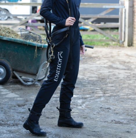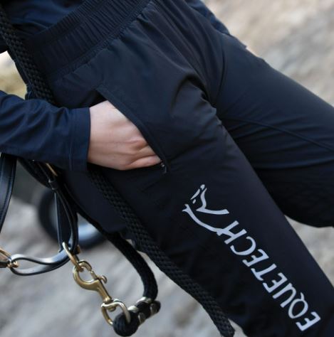 Technical all season stretch joggers for equestrian and country pursuits! Breathable, water repellent with four way stretch and jersey lined for complete comfort year round! These versatile joggers have careful seam positioning, allowing you to perform allowing all yard duties, dog walking, hacking and competitions in comfort. Wear on their own or over your existing leg wear for extra protection against the elements. Other features include a wide comfort waistband, zip pockets and wide cuffs to hem. Machine washable.
