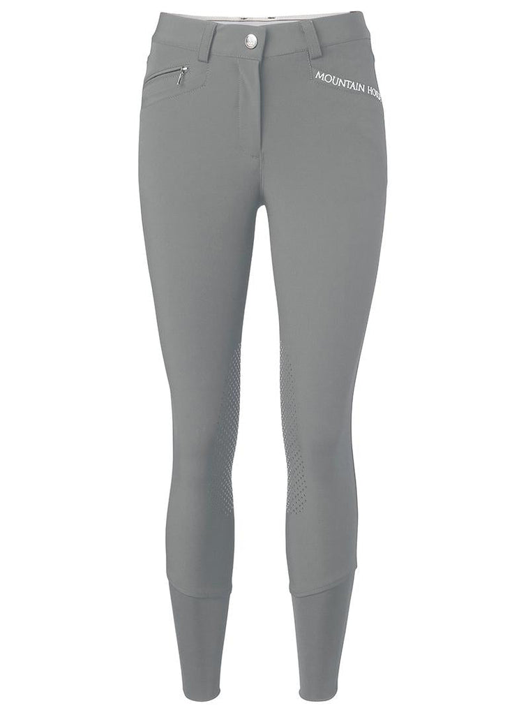 Designed for optimal performance, the Ester Breeches feature a durable and breathable fabric that effectively wicks away moisture and repels dirt and liquid. The high waist is equipped with a Hook & Loop closure for a secure fit, while the interior waistband boasts a soft logo elastic. With two spacious front pockets and a convenient coin pocket with a Zipper closure, these breeches offer practicality and style. Additional features include belt loops at the waistband and 3/4 length Silicone MH grip technology on the full seat, providing excellent grip and stability. Finished with a flexible double folded cuff, these breeches are the perfect choice for any equestrian activity.