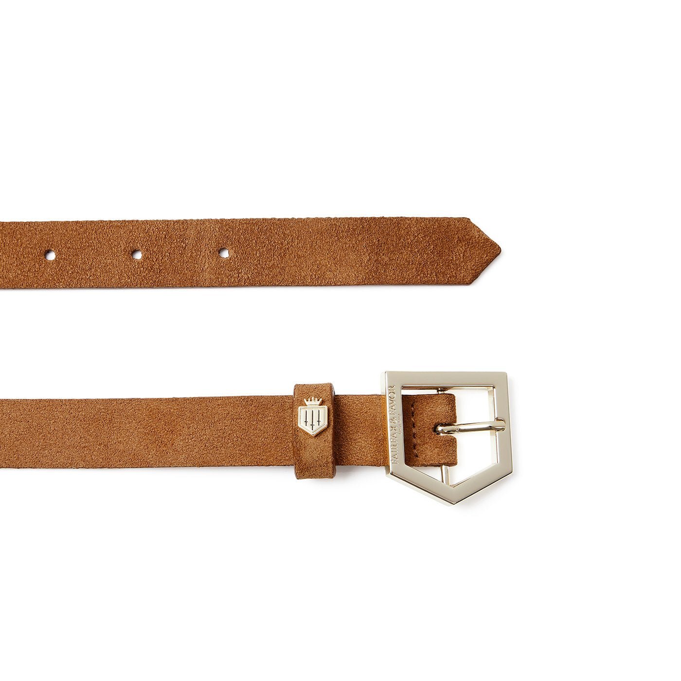 Introducing the Fairfax & Favor Sennowe Suede Belt — a classic, dainty belt crafted from soft suede and crowned with Fairfax & Favor's iconic gold shield buckle. Designed to complement both everyday outfits and more formal occasions, the Sennowe is a true wardrobe essential that elevates any look.