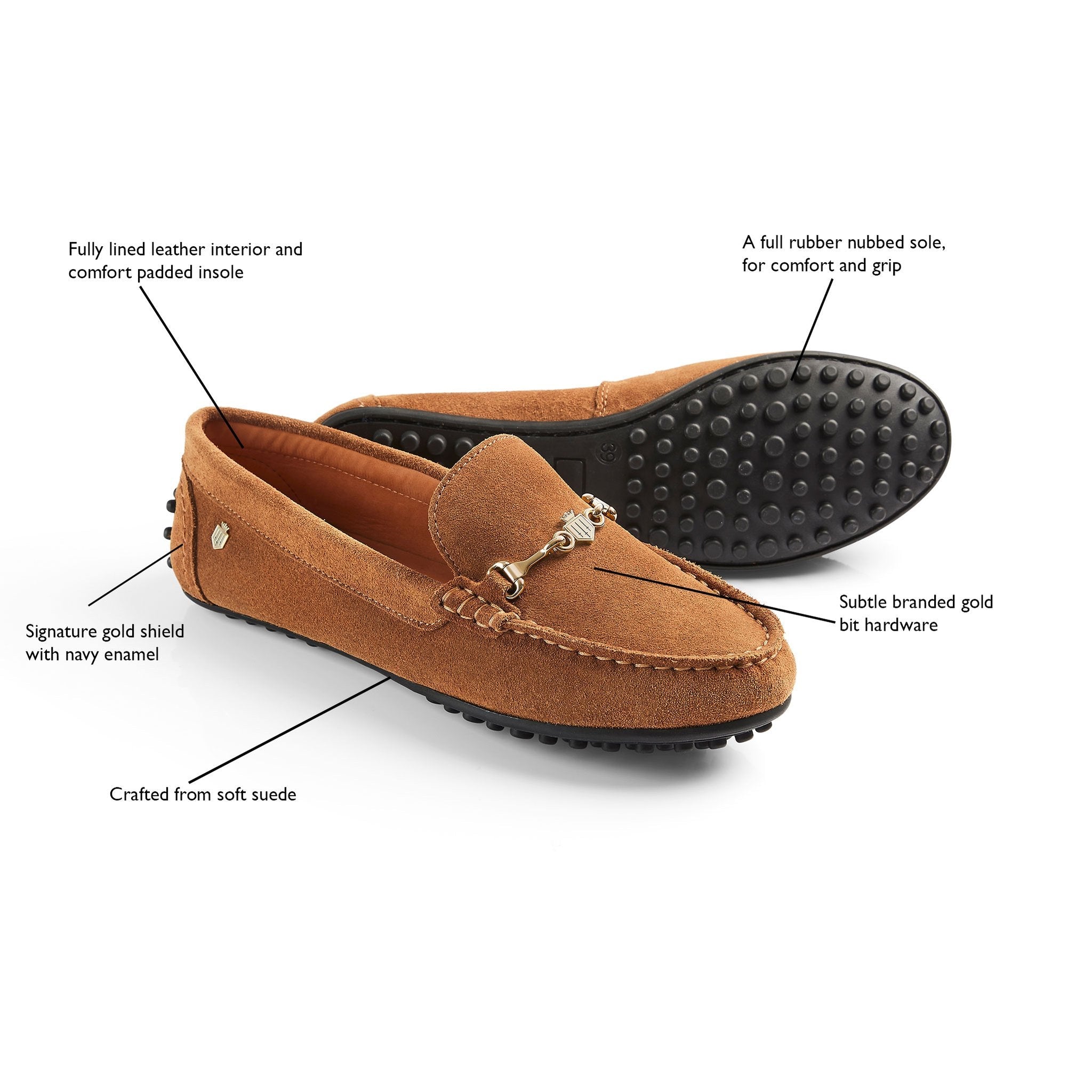 Crafted from soft, luxurious suede and lined with a leather comfort padded insole, this shoe brings a new level of everyday luxury. The finish is completed by branded gold bit hardware and the signature gold shield, delivering refined details that signal premium craftsmanship.