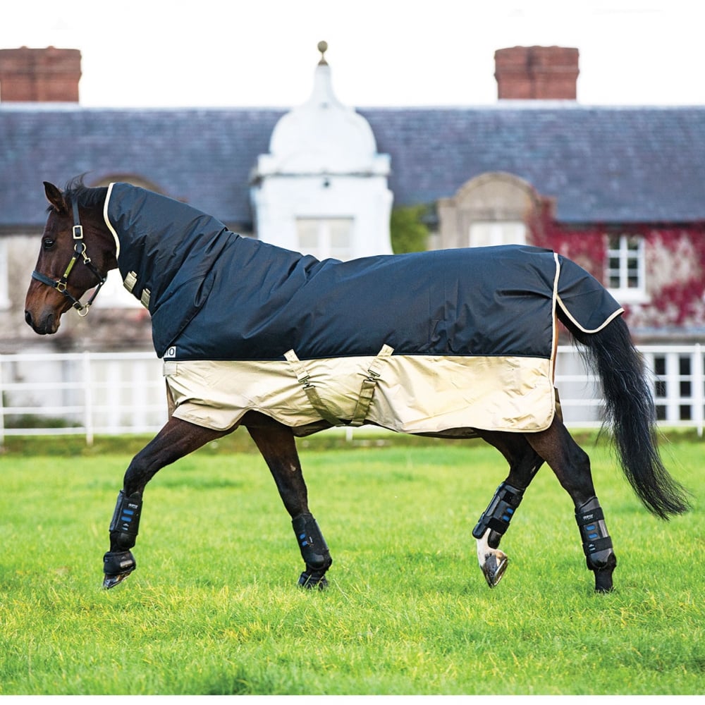 The Mio All In One Heavy Turnout from Horseware Ireland has a waterproof and breathable 600D polyester outer with a polyester lining. It features fully integrated neck, providing one weight from ears to tail, with double front closures, front leg arches and cross surcingles as standard.