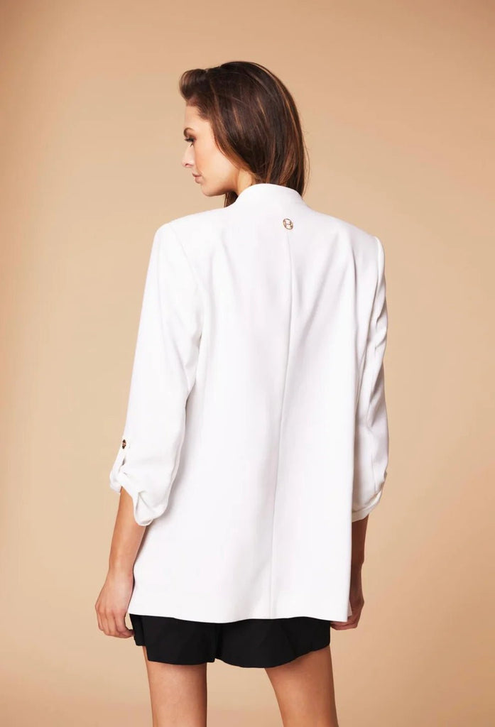 Introducing our Osbourne blazer, designed with an open waterfall front for effortless layering and ease of wear. Crafted to offer both style and functionality, this piece is a wardrobe essential.