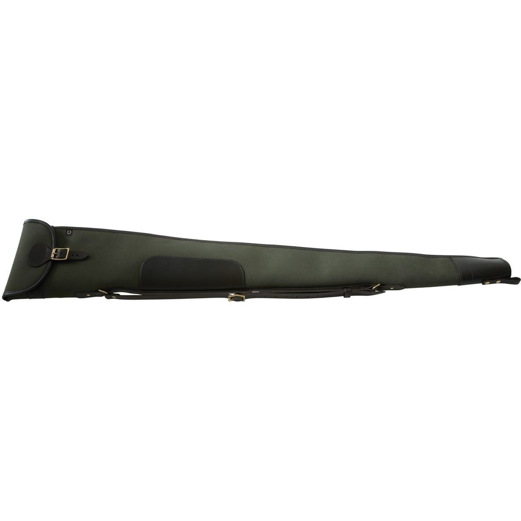 Hard wearing Croots Country Rosedale canvas shotgun slip. Made from 100% cotton with a fully waterproof rubber lamination to provide environmental protection and a durable layer to protect against bumps and scrapes. The implemented rubber increases the weight of the slip for a more even distribution but also increases the durability of the quality gun slip. The leather features includes fastening strap and shoulder sling. All the leather on the slip is bridle leather, hand stitched with the rest of the slip and naturally tanned for a superb finishing effect.Personalisation of up to 4 initials on this item is available. Please call us on 01432 377089 for more information. Please note, personalised items are non-returnable.Rosedale FeaturesCroots Rosedale Canvas Country rangePremium quality gun slipBridle leather shoulder sling2 inch brass fastening bucklePadded fleece lining offers protectionAvailable in 3 variations; Loden green with dark leather, Fox tan, Loden green with tan leatherCroot's Ref.MPN: CGS11 & CGS11 (G/T)Colours: Fox Tan, Loden Green Dark Leather Edging, Loden Green Tan Leather EdgingSizes, 76.2cm (30 Inch), 81.2cm (32 Inch)PM Ref: 920138.
