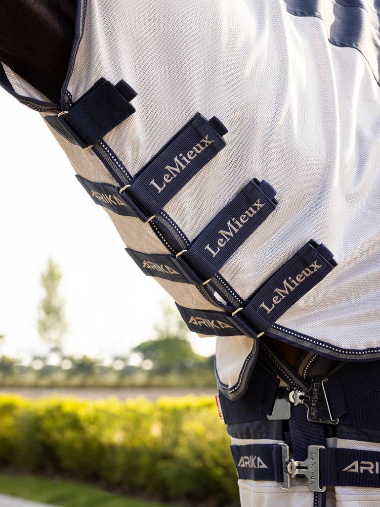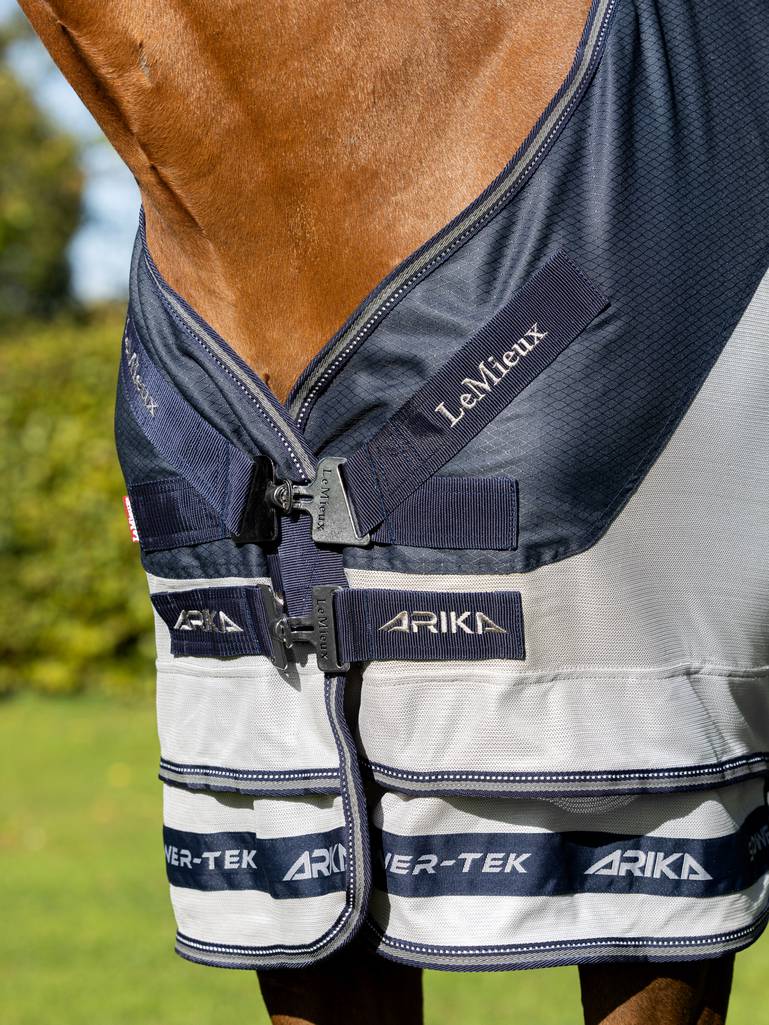 The extended shaped belly flap maximises coverage and features a three-strap closure with detachable central strap that helps to self-right the rug. The design registered angled front fastening system distributes pressure to prevent rubbing on the point of shoulder and across the chest.