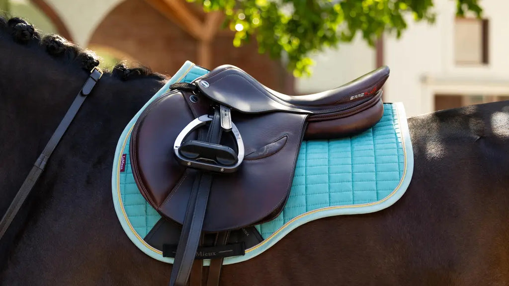 An iconic GP pad with its high wither cut, elasticated D-ring tabs and swept back profile, our suede saddle pads offer practicality and comfort under the saddle.