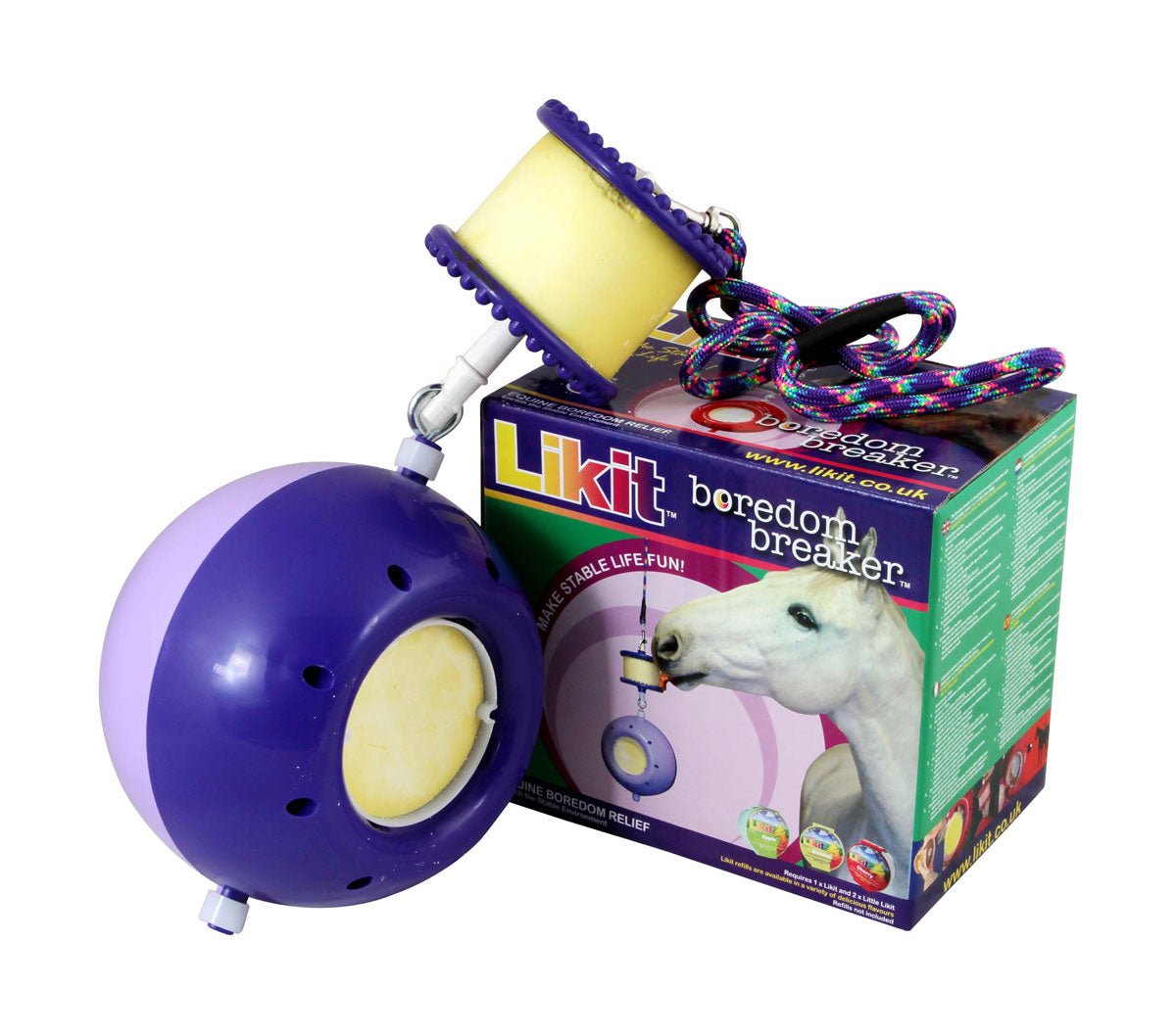 Combination toy which helps to stop boredom The Likit Boredom Breaker is a combination toy that includes a Likit Holder and a robust ball with inserts for two Little Likits. Features Includes a Likit Holder Includes a robust ball with inserts for two Little Likits Size Guide Available in one size.
