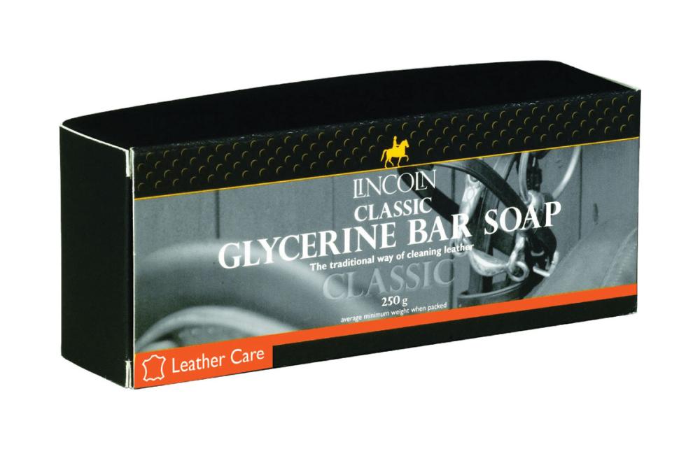 Lincoln's Classic Glycerine Bar Soap has stood the test of time. It cleans and nourishes tack and leaves a deep shine. The classic and time honoured quality product in a convenient to use container to effectively clean and nourish leather tack. This pleasantly fragranced, long-standing formulation has been trusted for many years. The perfect product for leather tack. Size Guide Available in a 250 Gram bar.