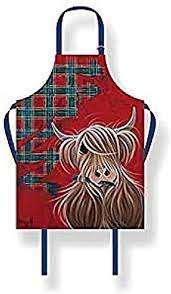 McMoo Tartan Paint design Cotton Apron with adjustable neck tie.