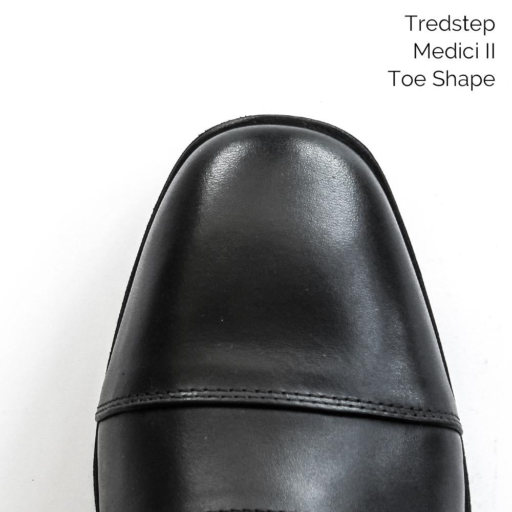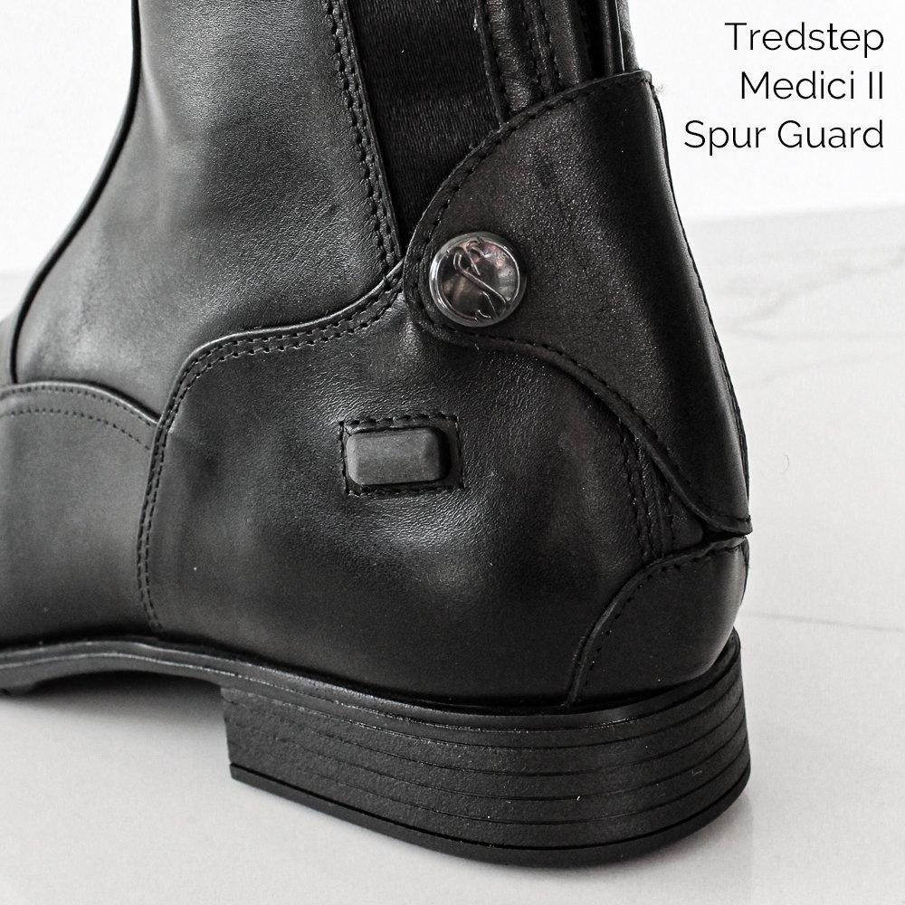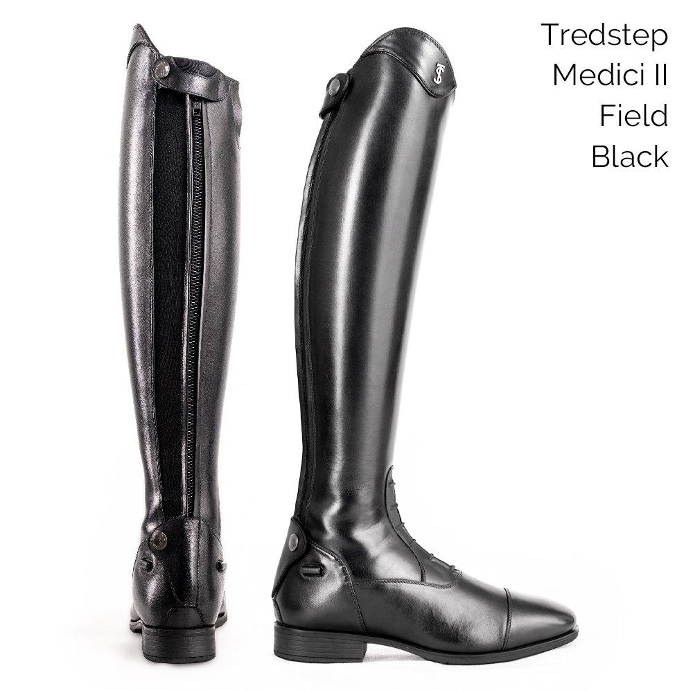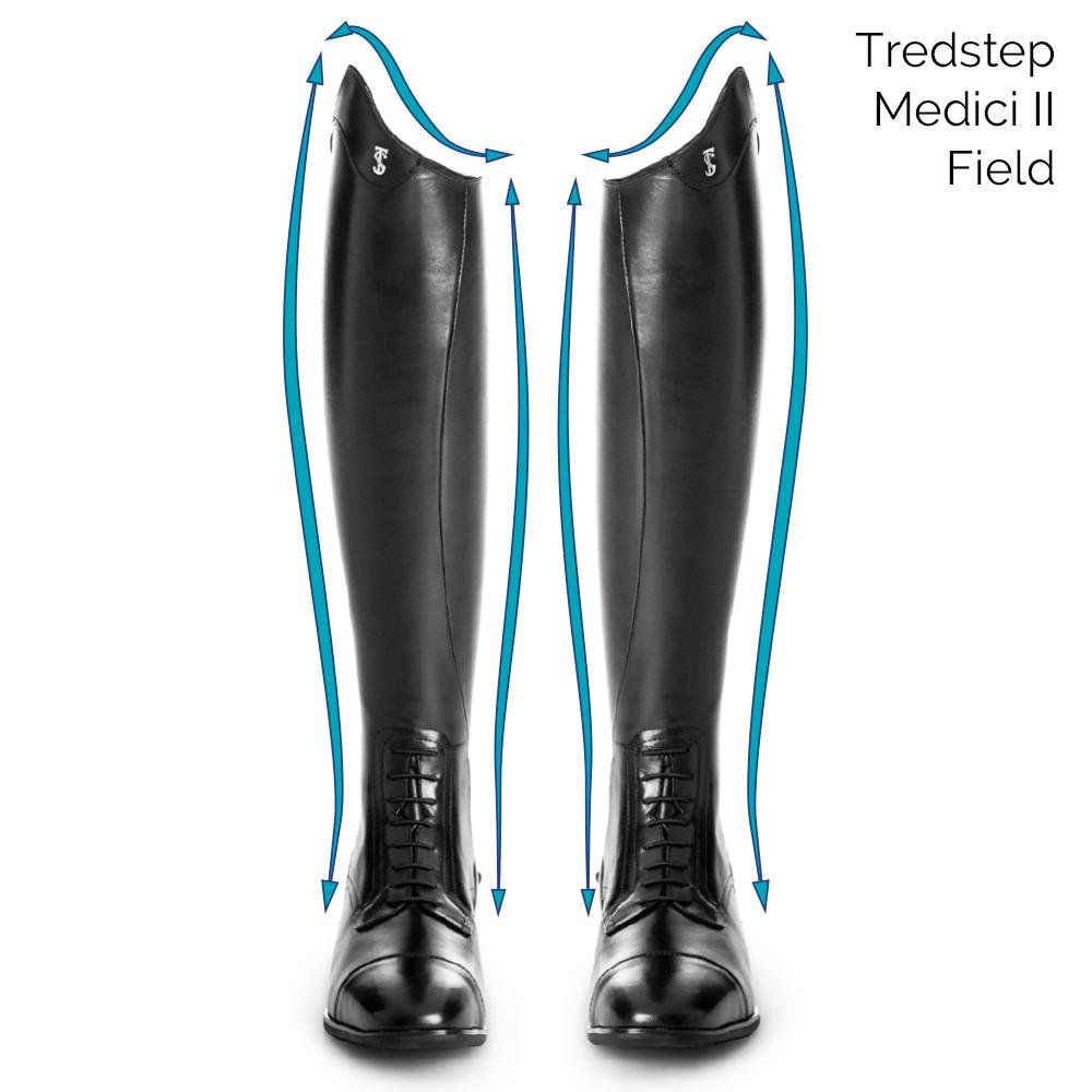 • High tensile stretch panel Meticulous European craftsmanship and sumptuous hand sourced calfskin leathers envelope and enhance the natural shaping of the rider’s leg, The Medici II combination of anatomical shaping with a new high tensile stretch panel and heavy-duty rear zip ensures a really secure contoured fit. The introduction of a new cushioned elastic easy closure at the top of the boot provides more comfort behind the knee. Mounted on an evolutionary cushioned rubber sole which combines a classic profile with the latest in sole technology, this coupled with a coolmax lined cushioned footbed ensures advanced stirrup grip and ankle flexibility while reducing foot fatigue. Additional features