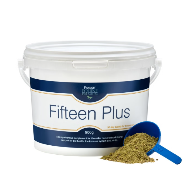 Fifteen Plus is a comprehensive supplement for the older horse with additional support for gut health, the immune system and joints. Recommended for all older horses whether still active and in regular work or enjoying their retirement.