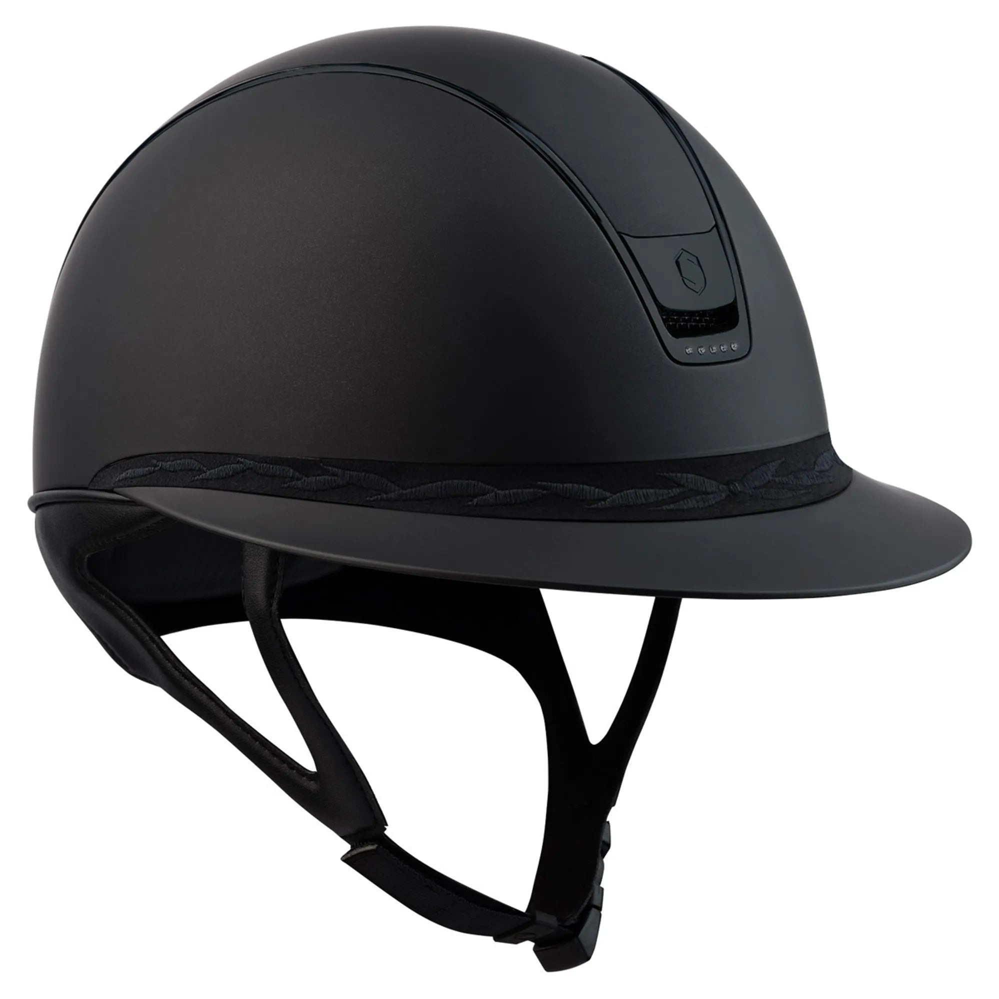 Exquisite materials - polycarbonate, a material found in top-tier motorgear - coupled with an anti-scratch paint give the Shadow Helmet unparalleled form and function. Embedded around the helmet's contours, up to 300 Swarovski crystals provide a glimmering accent to the signature edging. Advanced ventilation optimizes airflow with this helmet's 6-point system. Ergonomically designed, the integrated chinstrap offers the perfect fit for all hairdos, including a trainer's bun. Memory foam ensures a consistent thickness over time, while a semi-rigid chinstrap prevents hazardous tipping. Inside, variable-density polystyrene diffuses energy from impacts, accompanied by a removable comfort foam secured via a reliable clip system. Finally, the foam can be washed at 30°C for a permanently clean and pleasant aroma.