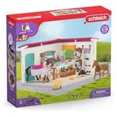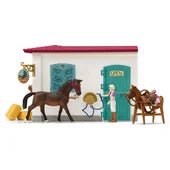 • Ding-dong! Customers are arriving at the Schleich Horse Club riding store. What new treat will you pick up for your horse? Horse feed, saddles, brushes...this tack store has it all! There's even a welcoming dog to help you find what you need.