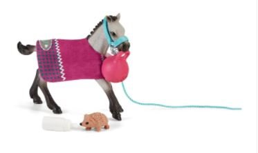 The real kicker of Schleich® Horse Club's Playful Foal is its special play ball with a handy handle! Watch as the Quarter horse foal and a darling hedgehog become fast friends in no time!