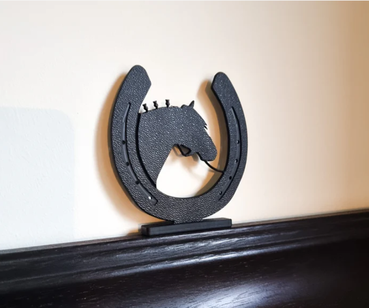 A simple but effective Clydesdale Horse Shoe ShadowShapes ornament made from black recycled plastic.