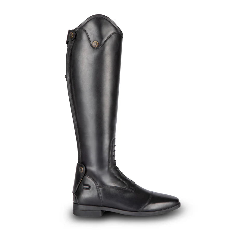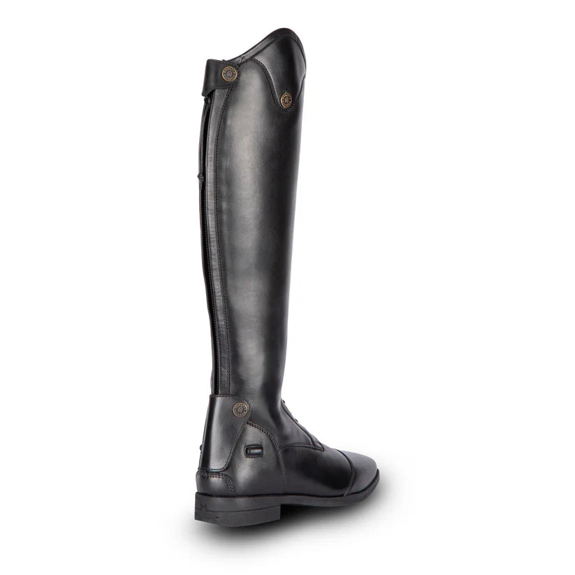 Expertly constructed in smooth shape retaining leather, smartly polished to a high sheen finish making them ideal for the arena. The YKK® zip system offers a free running close fit with a contoured shape, zip guards give a tidy finish and protect against wear. A carefully engineered square toe and stretch mock laces offer classic style. Leather covered UltraFit panels sculpt the calf, dressage cut tops further enhance the shape for an elongated leg look.