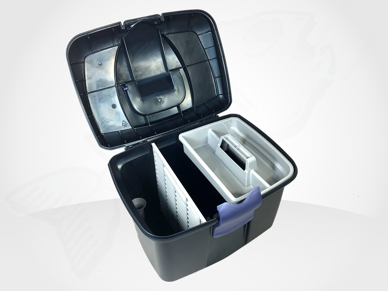 A high specification tack box suitable for all equestrian needs. Features an internal partition for easy compartmental storage. Hoof oil brush holder ensures things stay nice and clean inside.