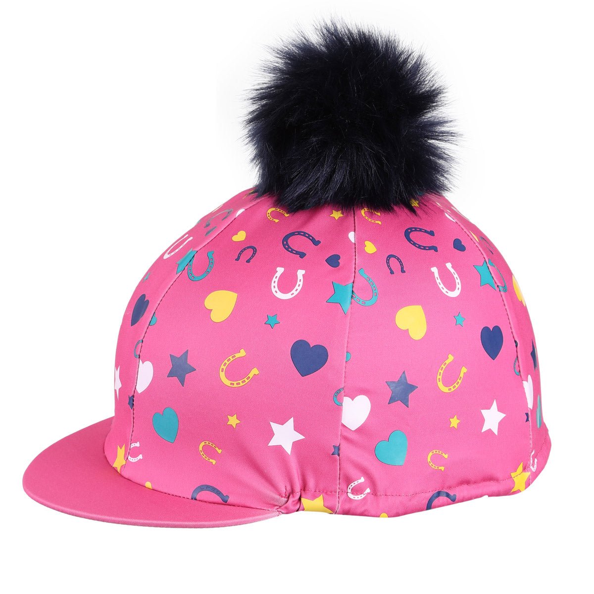 Tikaboo coordinating hat silk with a fun print and faux fur pom pom.
