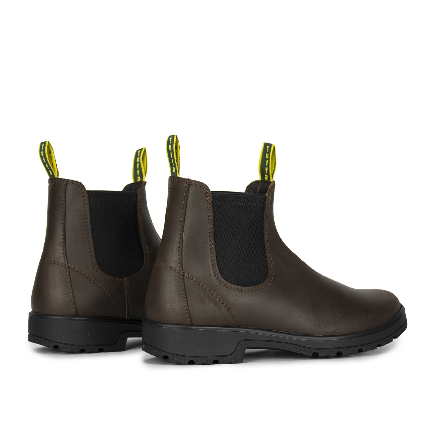 Designed specifically for wider feet, the Tuffa Iceni Jodhpur Boots offer unparalleled comfort and durability with their supple and supportive waxed nubuck leather uppers. These unisex boots are lightweight yet exceptionally durable, featuring a tailored ankle for a secure fit. Whether for yard work or riding, these boots provide all-day comfort with their non-slip rubber soles. Additionally, a waterproof and breathable membrane, along with reinforced elastic ankle panels, prevent water seepage for a reliable and trusted option in equestrian and farming footwear.