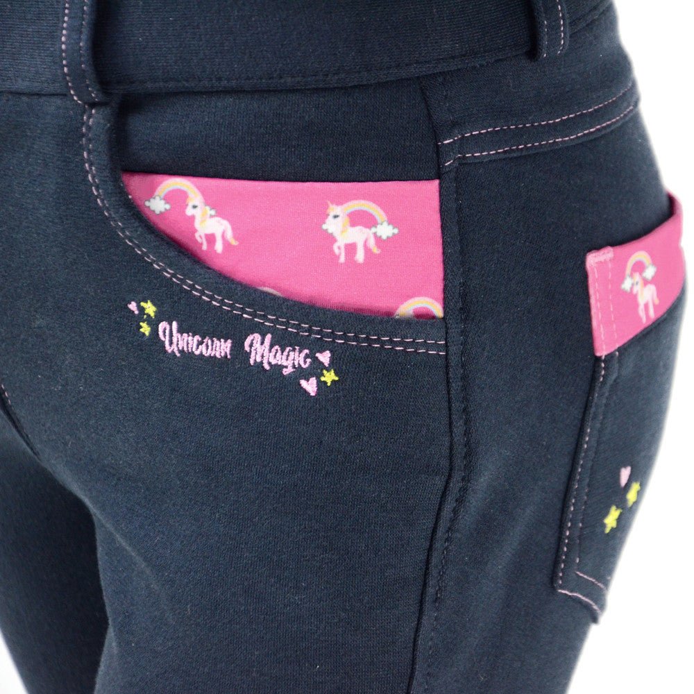 Your child will feel magical in these Little Unicorn Breeches. Made with super soft material featuring pink stitching and four contrasting pockets with matching stretchy no bulk ankles. Completed with beautiful star and heart detailing on the back pockets.