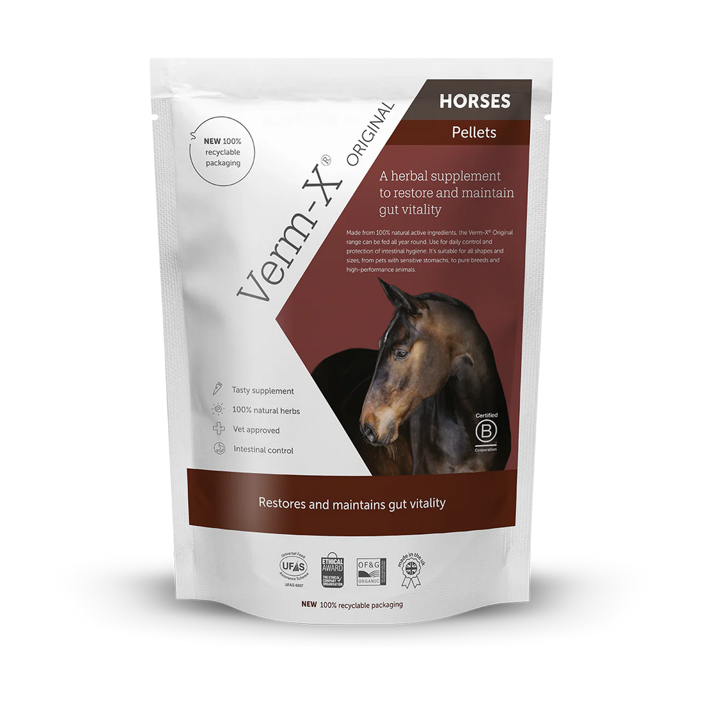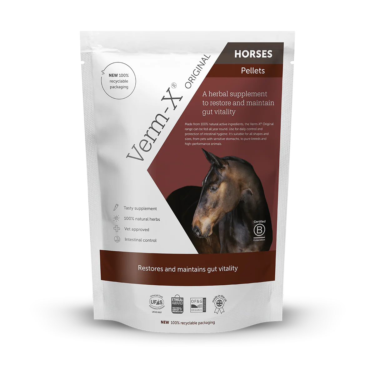 Made from 100% natural active ingredients, the Verm-X® Original range can be fed all year round. Use for daily control and protection of intestinal hygiene. It’s suitable for all shapes and sizes, from pets with sensitive stomachs, to pure breeds and high-performance animals.
